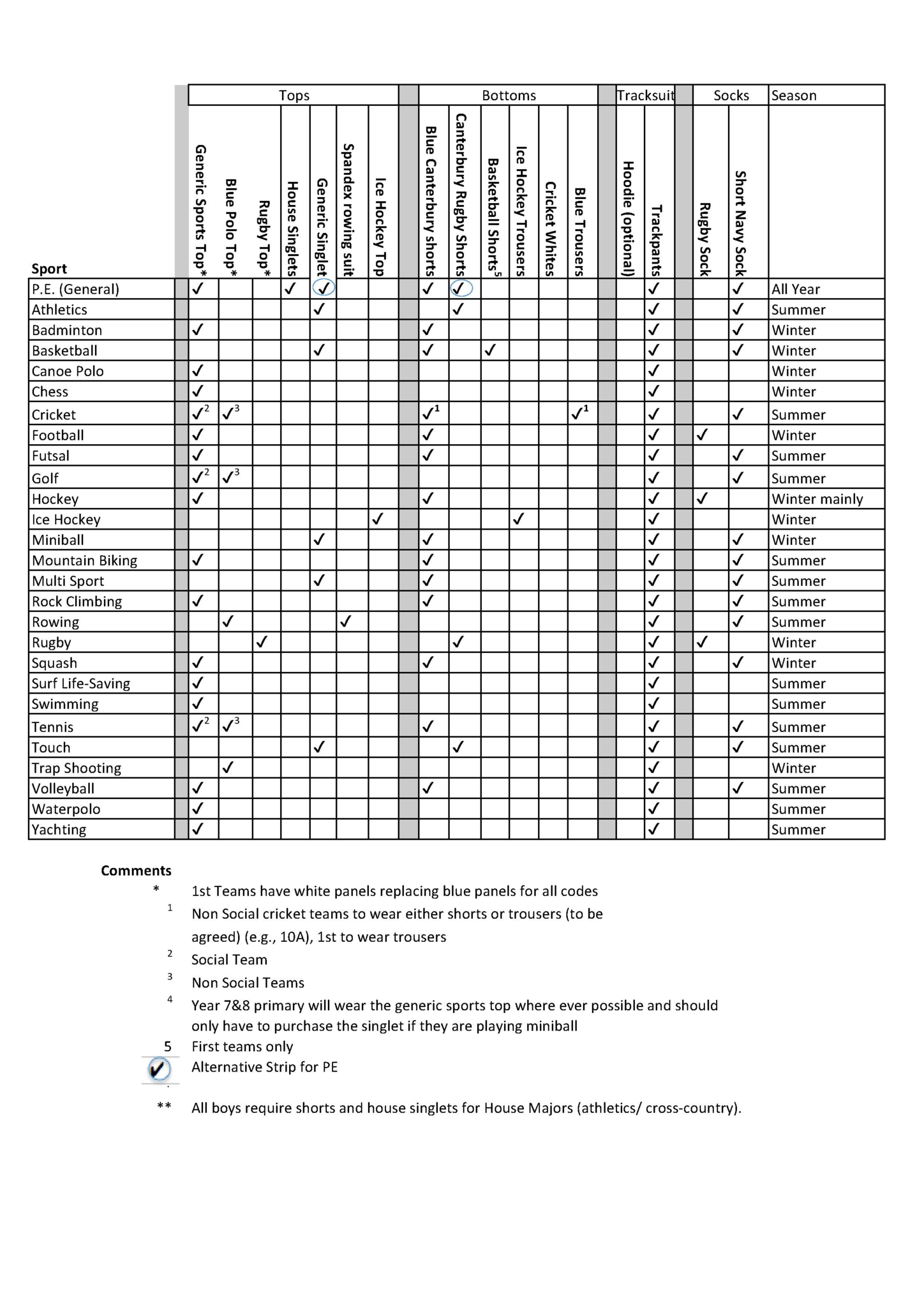 Students need this top if they are participating in the following sports: